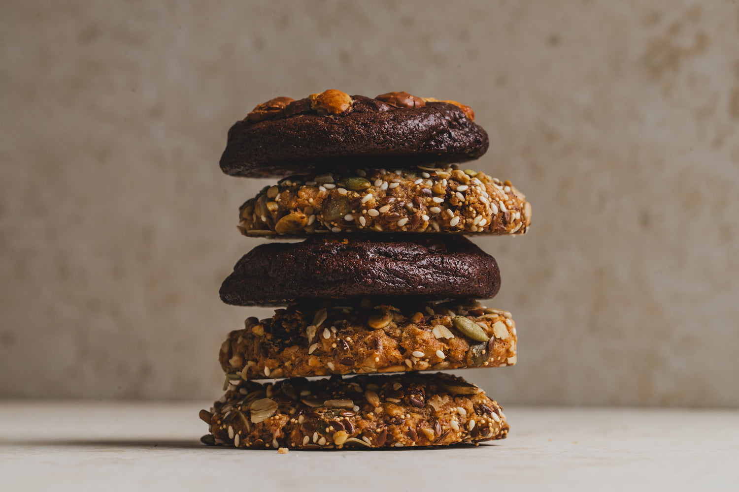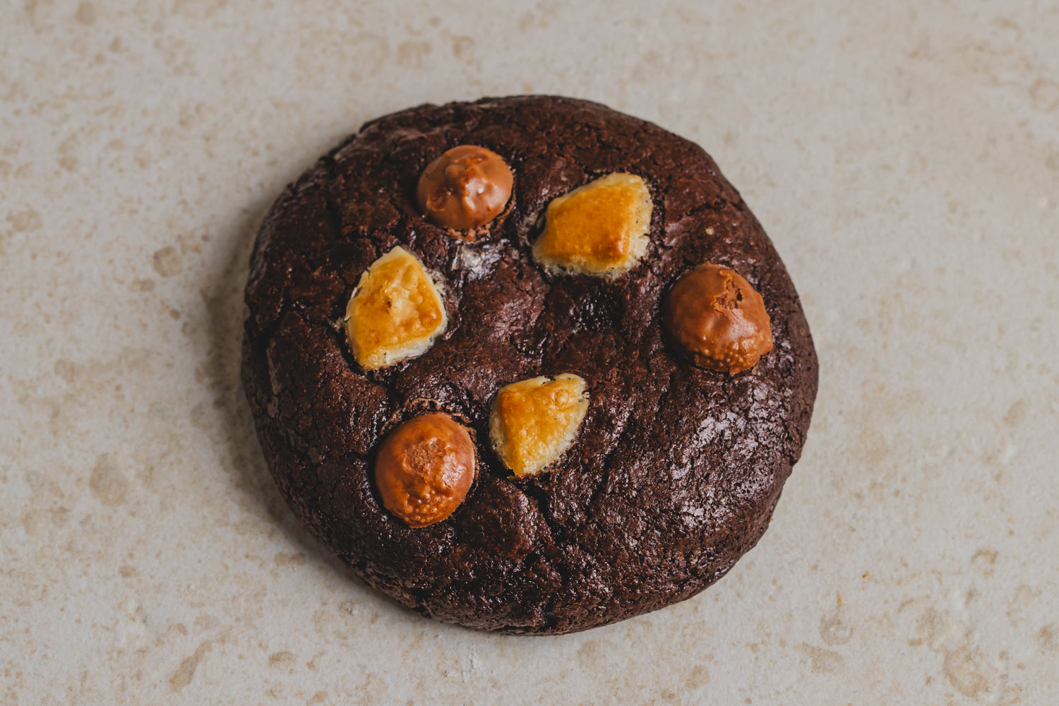 Flourless chocolate biscuits with chunks of chocolate throughout.